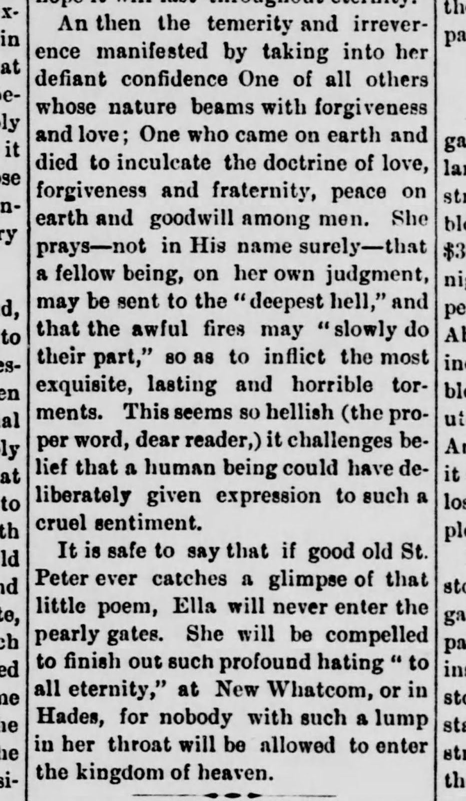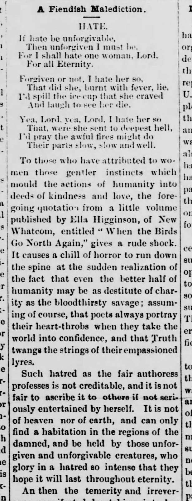 head was “smashed almost to a pulp” and “Mrs. Ella Higginson, the poetess, of