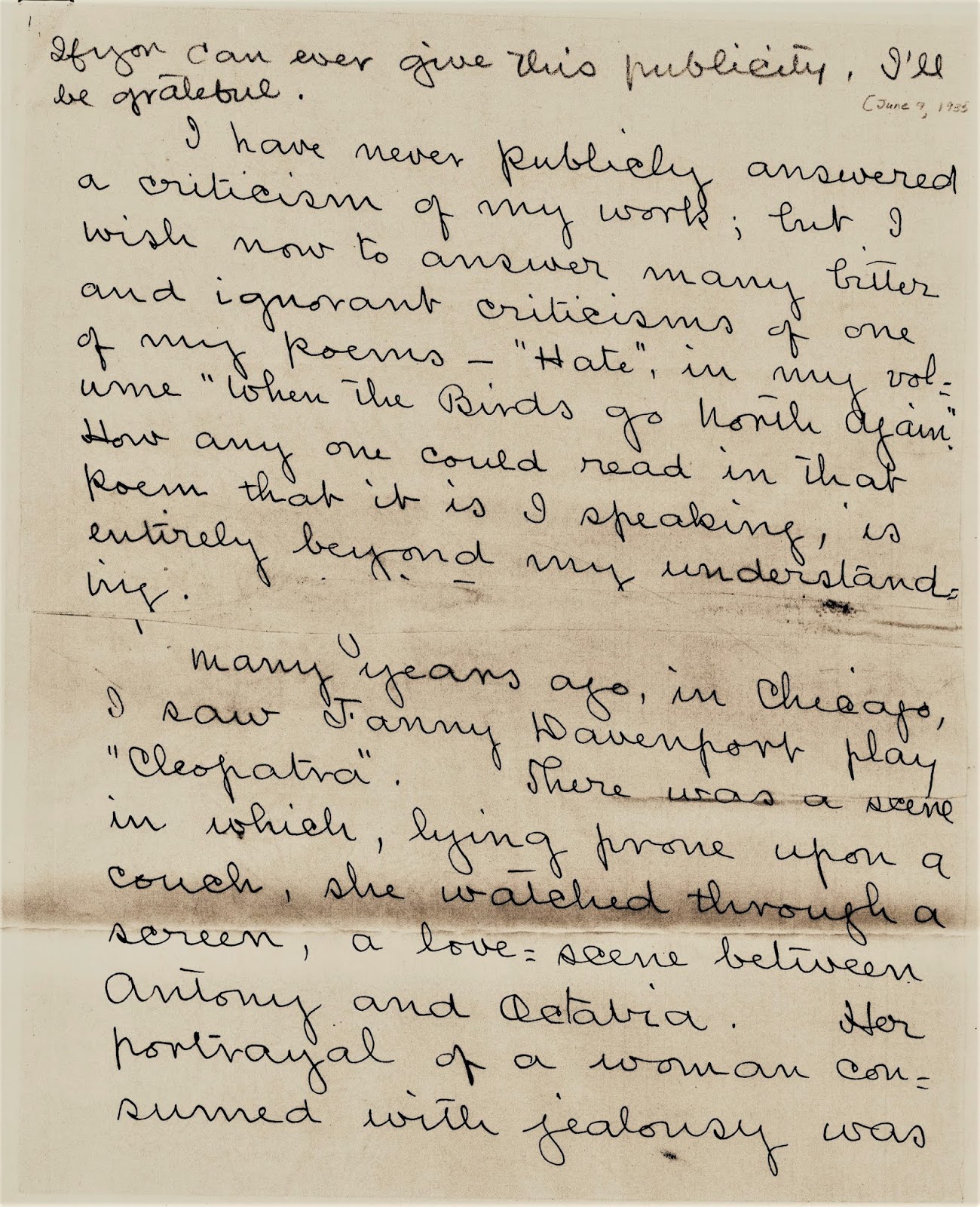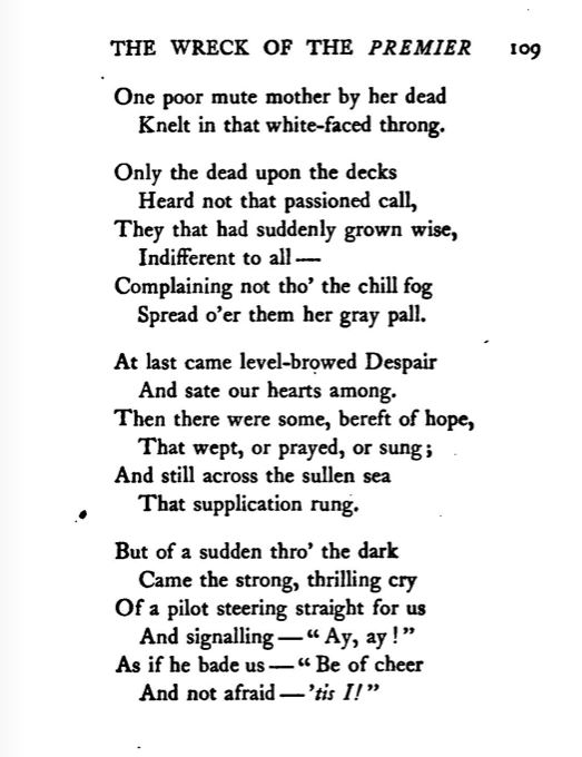 stanza with, “The mother stirred, and her pale lips/Prayed now above her dead.”