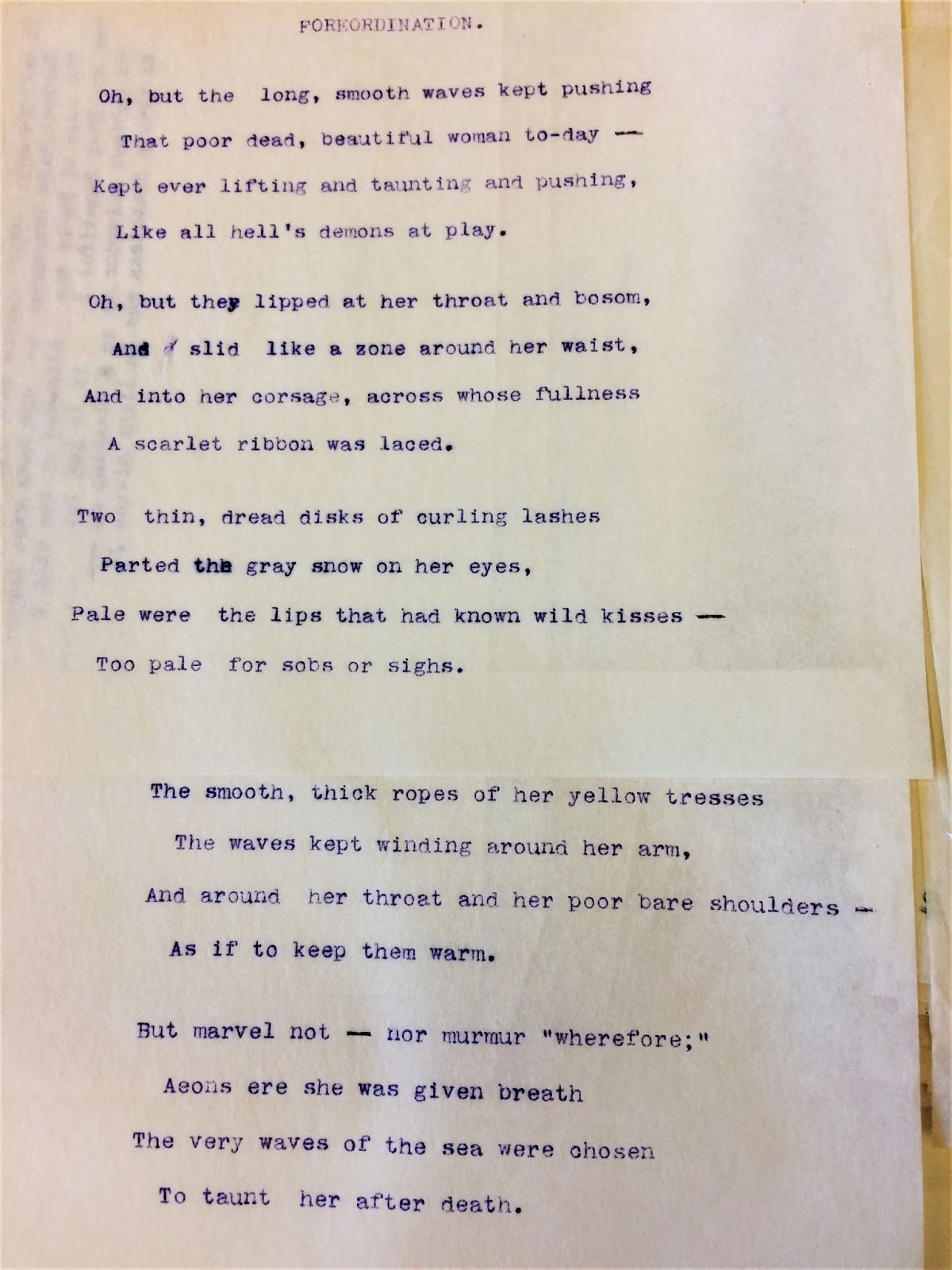 A draft of “Foreordination,” courtesy of the Ella Higginson Papers, Center for Pacific Northwest Studies, Heritage Resources, Western Washington University, Bellingham Washington.