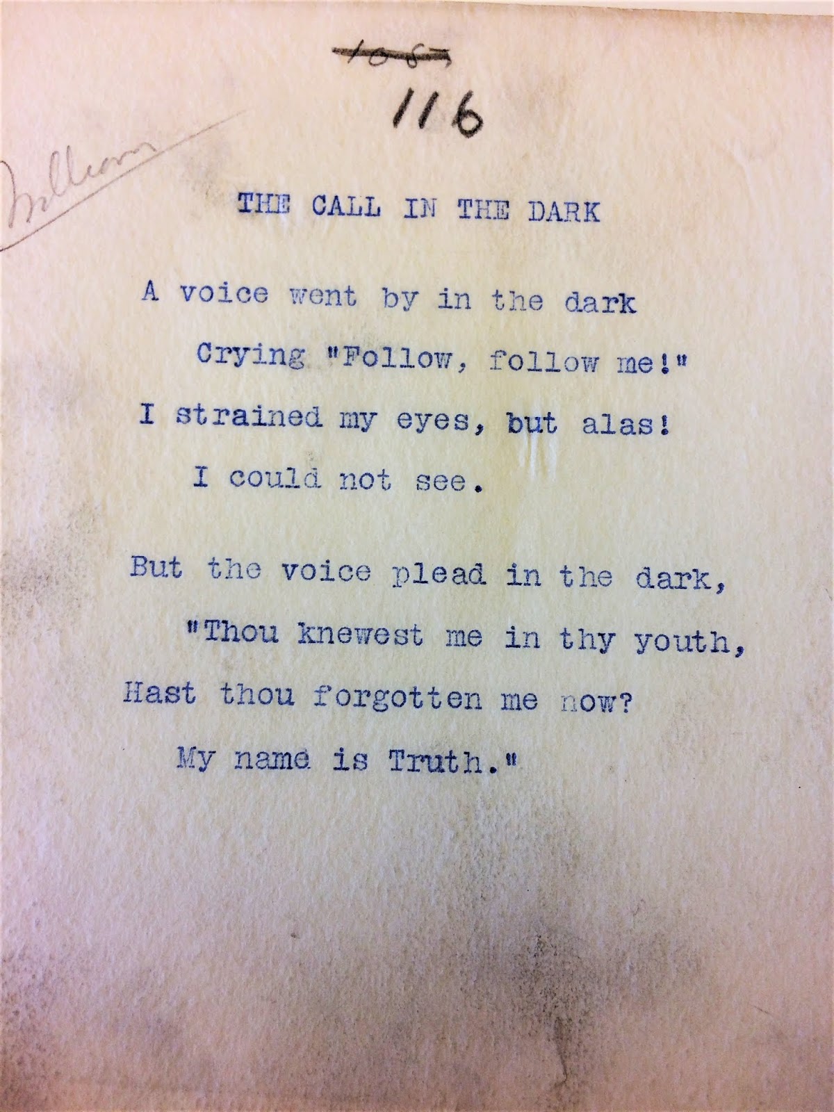 A draft of “The Call in the Dark,” courtesy of the Ella Higginson Papers, Center for Pacific Northwest Studies, Heritage Resources, Western Washington University, Bellingham Washington.
