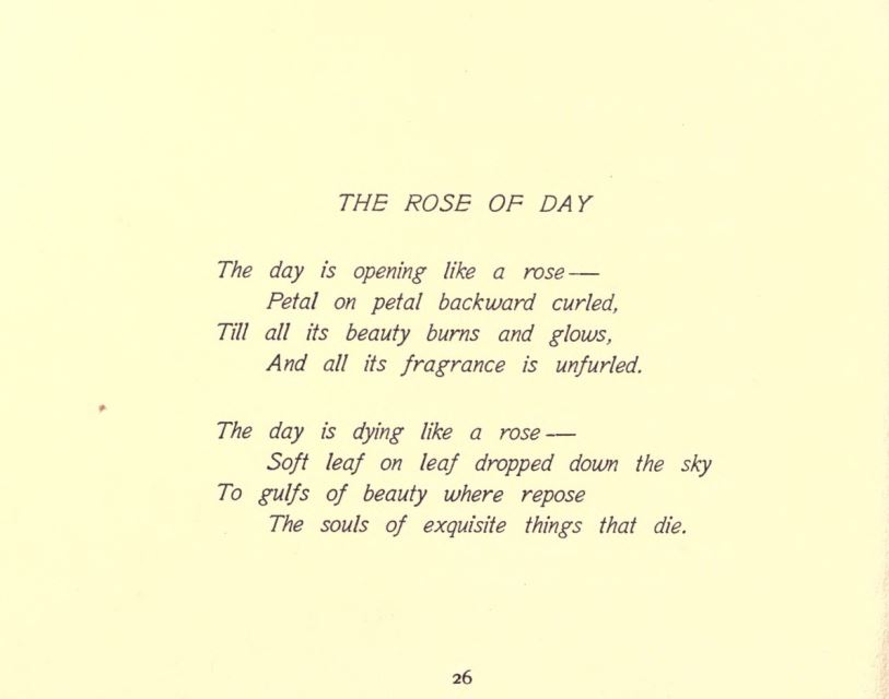 “The Rose of Day” “The Rose of Day” as it appears in Higginson’s The Voice of April-Land and Other Poems (1903). “The Rose of Day” as it appears in Higginson’s Four-Leaf Clover (1901).