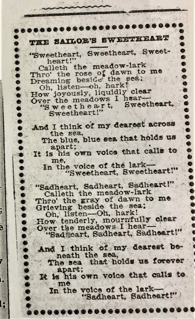 “The Sailor’s Sweetheart” as it appears in Higginson’s The Voice of April-Land and Other Poems (1903).