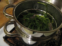 | Nettles — in the background, Â simmering nettles; use the cooking water to lightly irrigate starts, moisten composts |