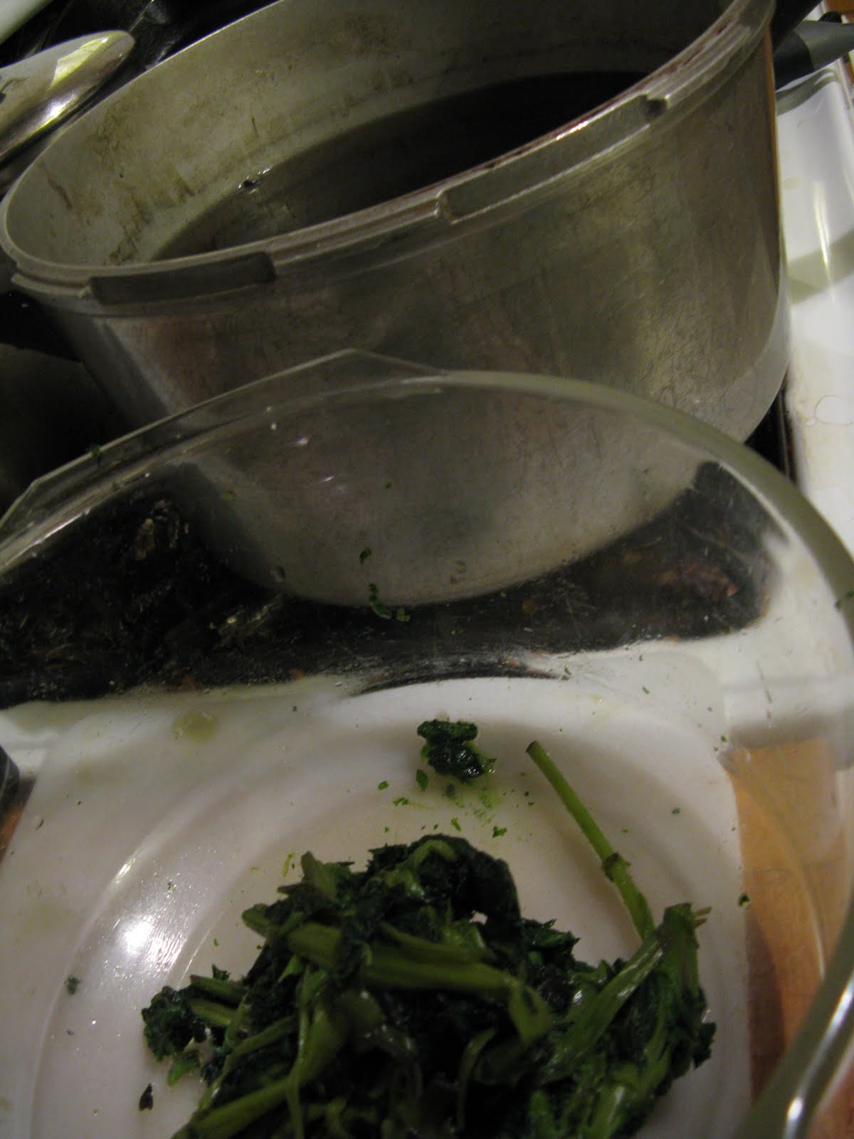 | Nettles — in the background, Â simmering nettles; use the cooking water to lightly irrigate starts, moisten composts |