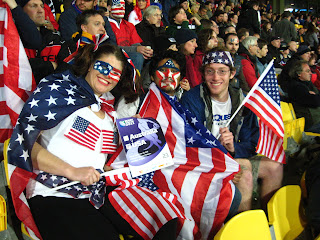 Going into the game we expected to get annihilated but Australia (ranked 3rd in the world), but we didn’t care. This is probably the most patriotic I have, or will ever be. We all bought flags and US colored things, and some of us painted our faces (I didn’t go that far). It was great to also hear all the Americans in the Stadium actually sing the national anthem, as apposed to just standing there and listening to a singers rendition of the song.